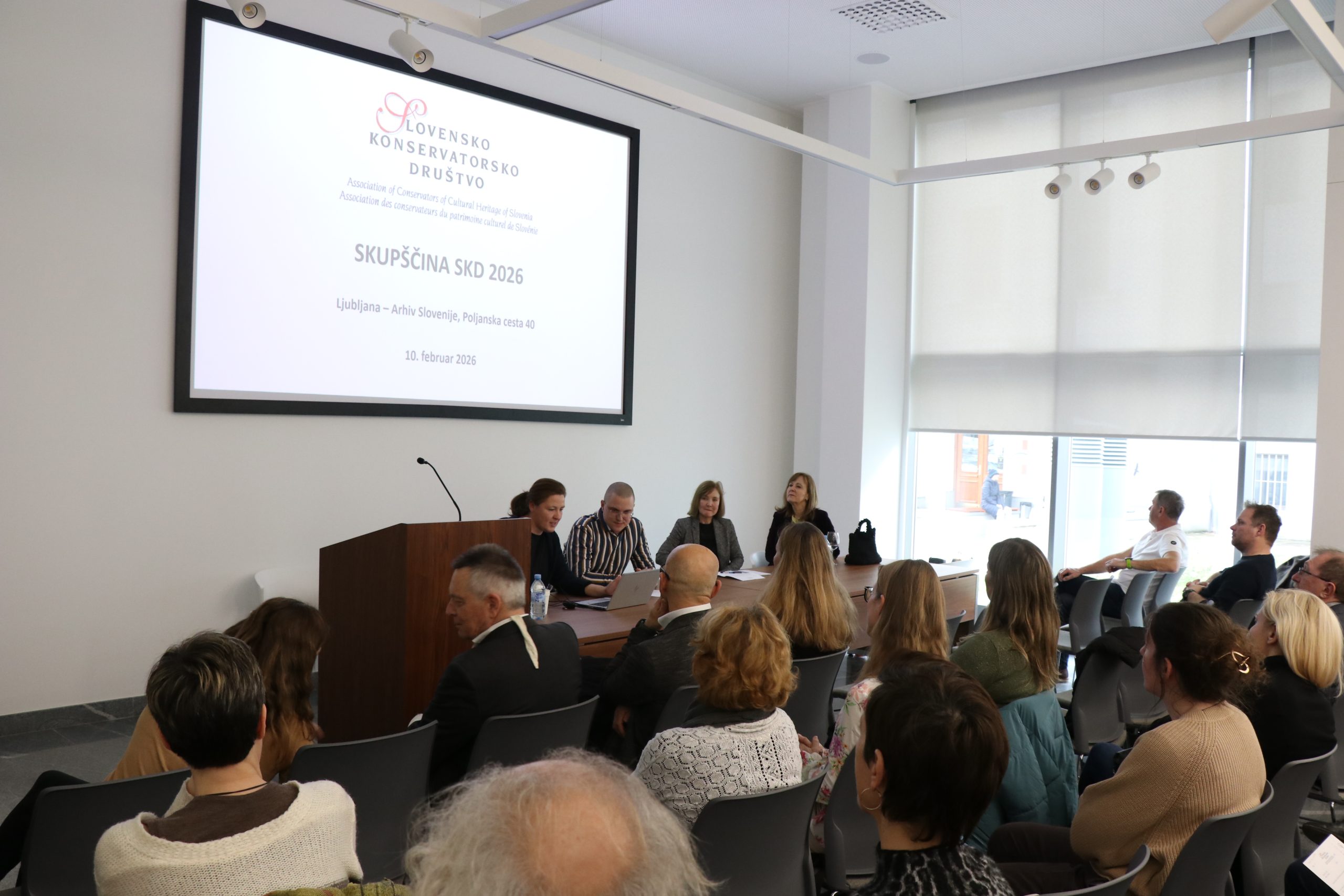 V torek, 10. februarja 2026, je v prostorih Arhiva RS v Ljubljani potekal strokovni posvet Slovenskega konservatorskega društva, ki je bil pripravljen v sodelovanju z ZVKDS, območna enota Ljubljana, z naslovom Konservatorstvo v teoriji in praksi, ki mu je sledila izredna skupščina društva. Dogodek je združil člane društva ter širšo strokovno javnost s področja varstva kulturne dediščine.